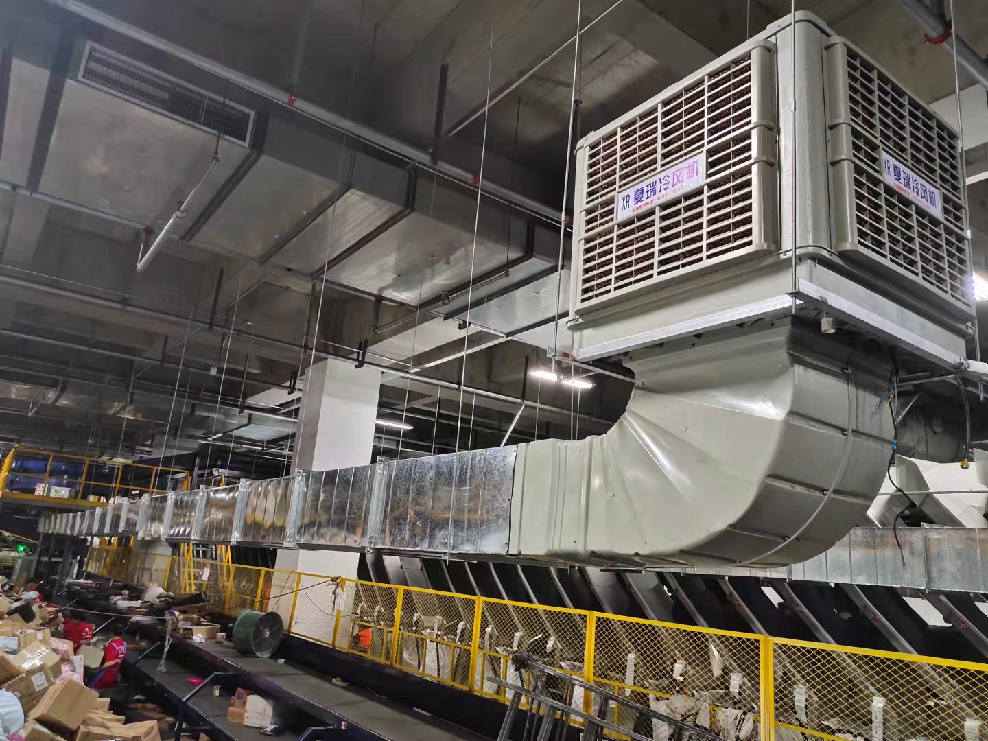 鄭州百世快遞運(yùn)轉(zhuǎn)中心為于中牟普洛斯物流園,一期和二期面積一共有8萬(wàn)平方目前冷風(fēng)系統(tǒng)和大吊扇已經(jīng)交付使用,效果達(dá)到了客戶的滿意。